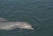 The body of the bottlenose dolphin is long and somewhat stocky. The melon is well-defined. The lower jaw extends beyond the upper jaw, curving slightly upwards at the tip. This dolphin is usually dark grey dorsally and white or pinkish ventrally (Minasian et al, 1984). In some areas, bottlenose dolphins develop ventral spotting with age. This has been seen in several Australian coastal populations (Ross and Cockcroft, 1990). The dorsal fin is large and falcate. The flippers are medium-sized and slightly rounded. The flukes are broad, thin and somewhat rounded at the tips and have a well-defined median notch. This dolphin can reach 4 m in length and weigh up to 650 kg (Minasian et al, 1984). There are regional variations in maximum length and weight. In the Northwest Atlantic, they are on average 250-260 cm, with a maximum of 309 cm (Mead and Potter, 1990). In this area, there is a clear distinction in body measurements, including lengths, between coastal (warm water) and offshore (cold water) populations, the latter being the largest (247 vs. 289 cm) (Hersh and Duffield, 1990). Ross and Cockcroft (1990) found a correlation between average water temperature and body size in Australian waters as well. There are 18-26 pairs of sharp conical teeth in each jaw.